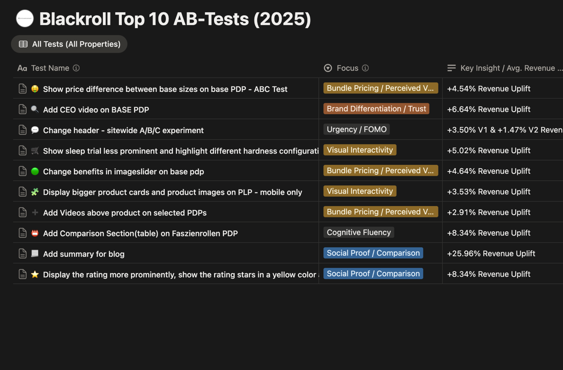 BLACKROLL Top 10 AB-Tests (2025)