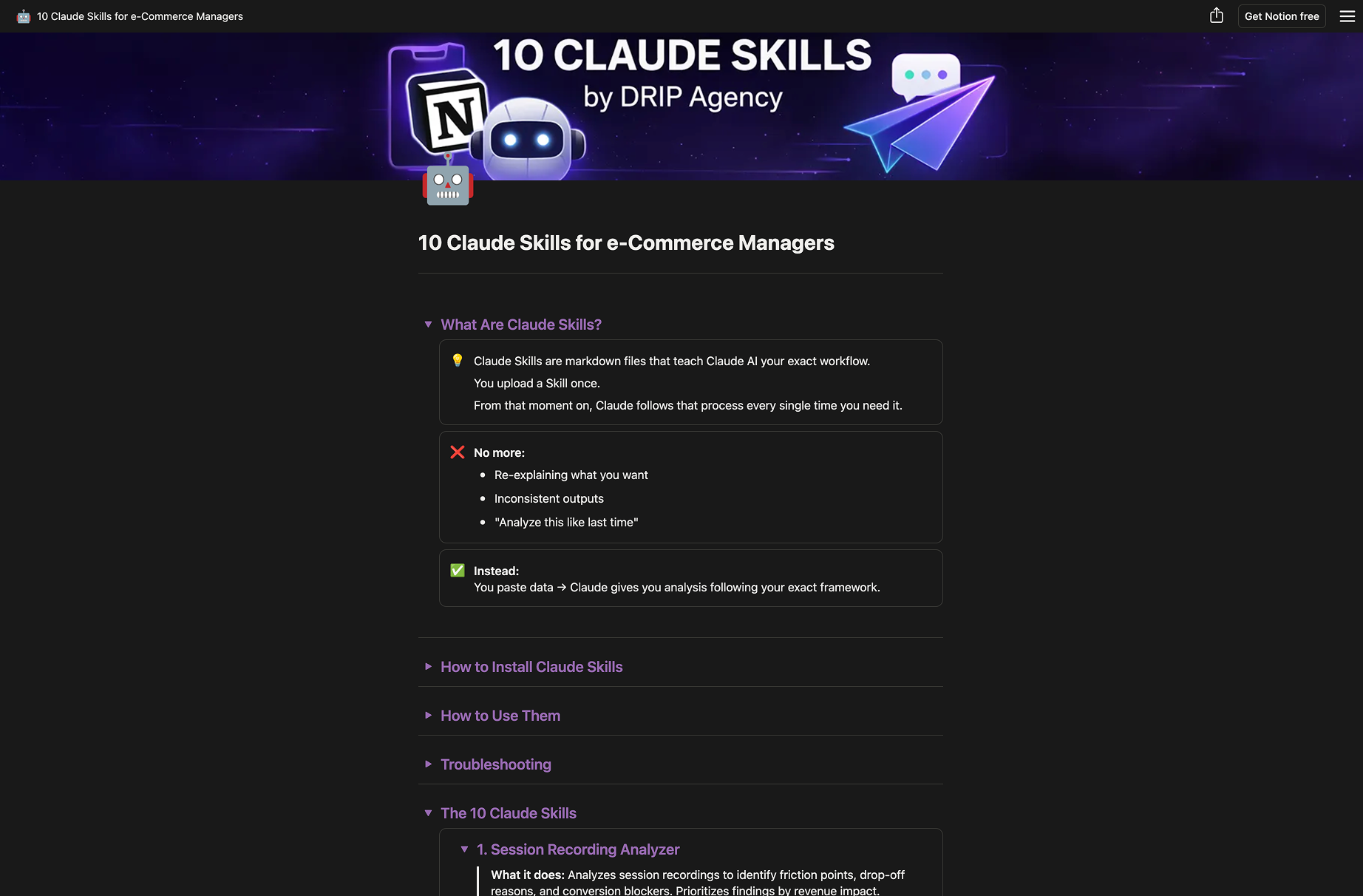 Claude Skills dropped in January. I built 10 for e-Commerce managers. A Skill is a markdown file. Upload it once.
